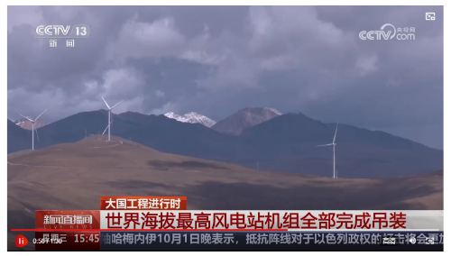 • 央視新聞:大國工程進行時 世界海拔最高風電站機組全部完成吊裝